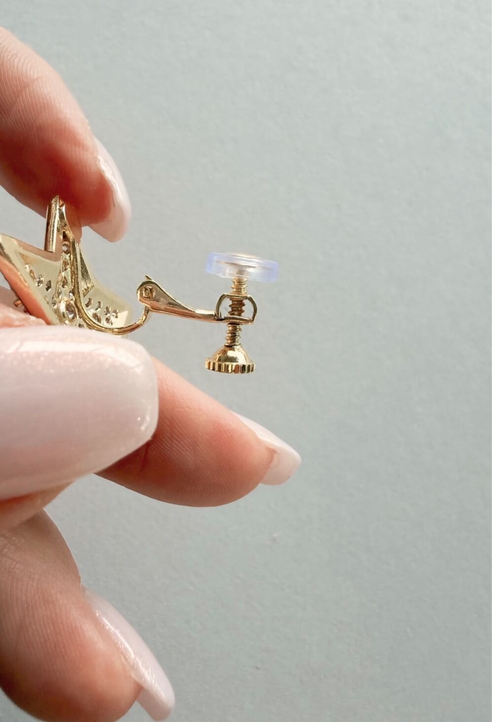 耳たぶの裏側に位置する金具部分に装着するだけで取り付け完了。シリコン製の柔らかいクッションが耳への負担を軽減してくれます。重みのあるイヤリングの滑り落ち防止などにも。